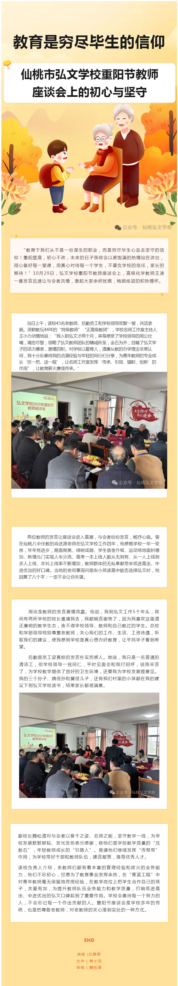 “教育是穷尽毕生坚守的信仰”——弘文学校重阳节教师座谈会上的初心与坚…