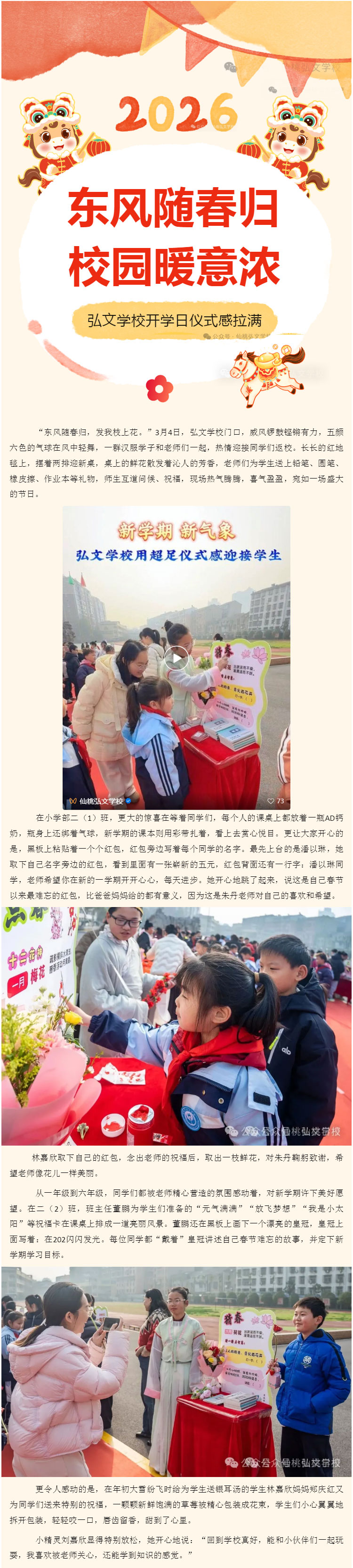 东风随春归,校园暖意浓——弘文学校开学日仪式感拉满
