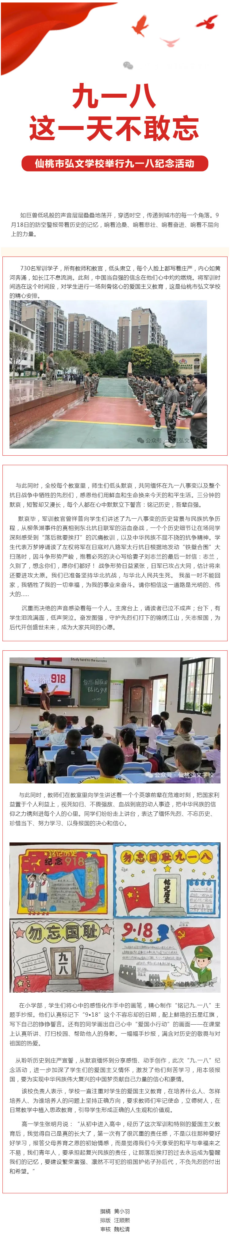 这一天不敢忘——仙桃市弘文学校举行九一八纪念活动