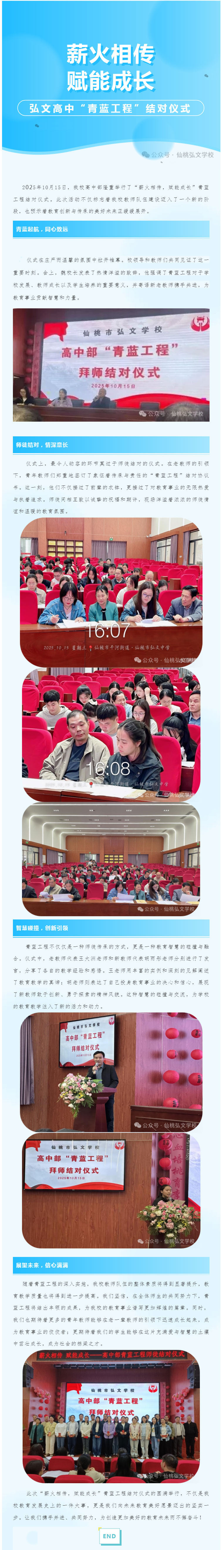薪火相传,赋能成长——弘文学校高中部“青蓝工程”结对仪式圆满举行