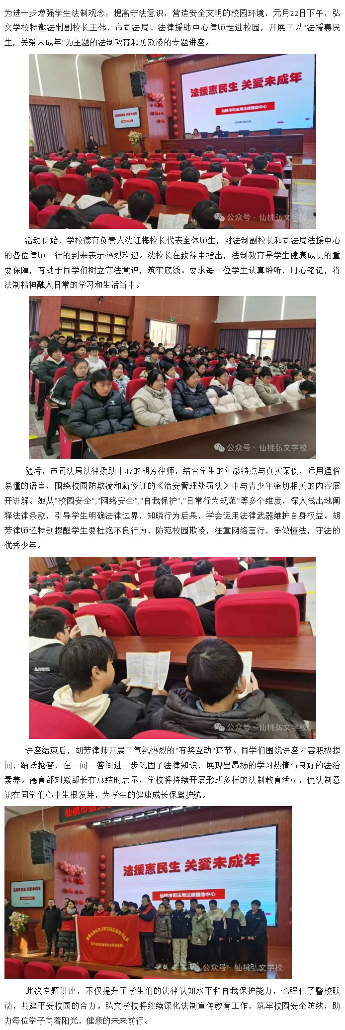 法援惠民生 关爱未成年——弘文学校开展防欺凌和法律新规知识宣讲活动