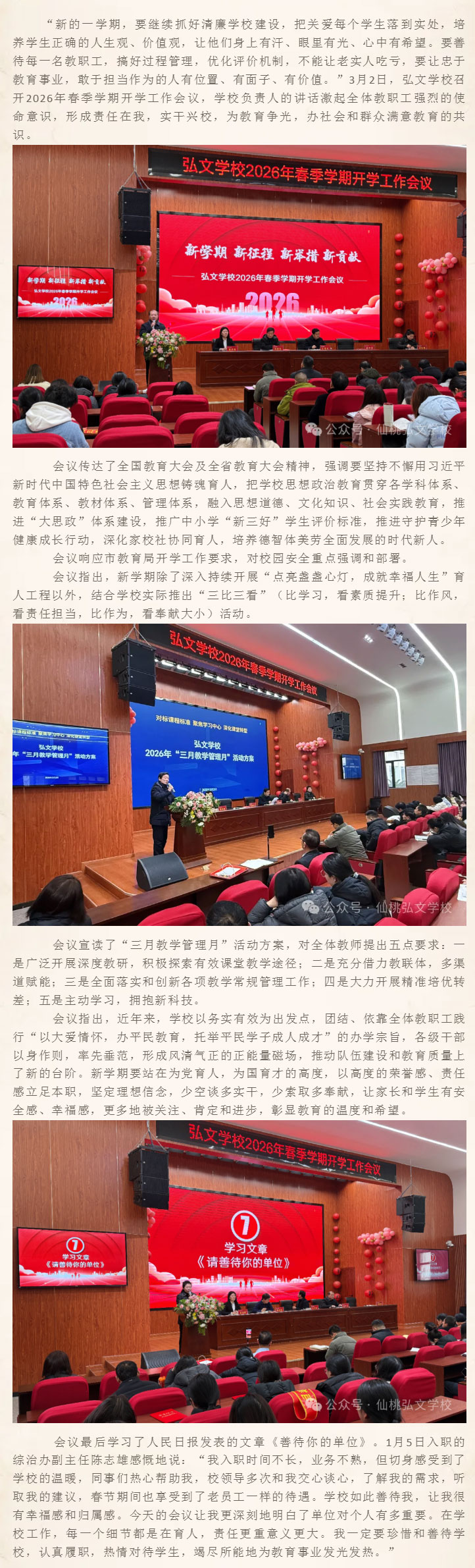 要让干事创业的人有位置有面子有价值——弘文学校春季学期开学工作会议振奋人心
