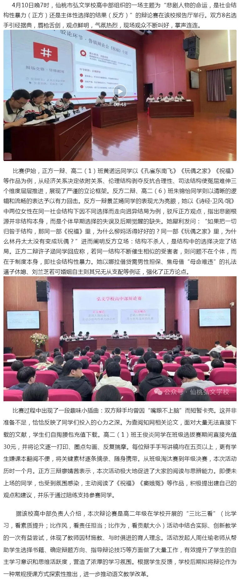 以辩论培养学生阅读兴趣和思辩能力——弘文学校探索语文教学新模式